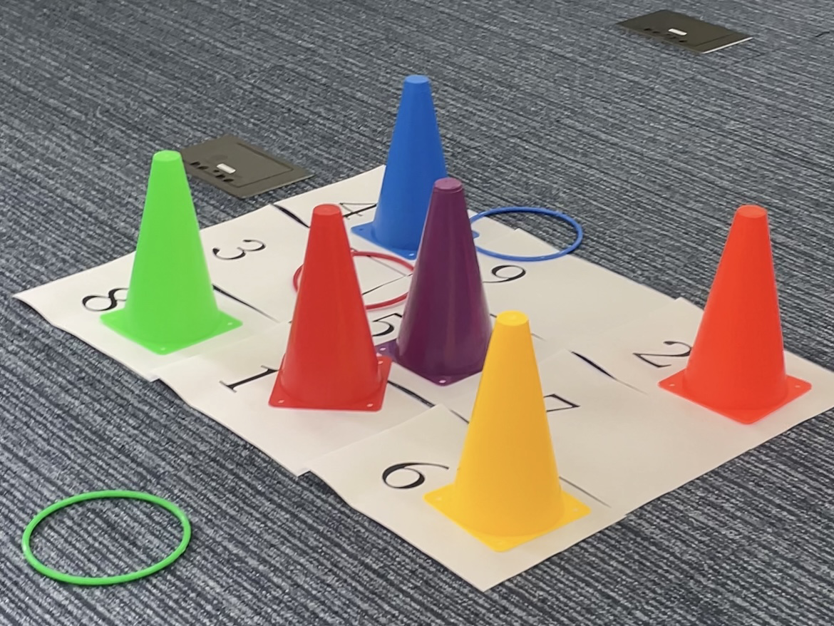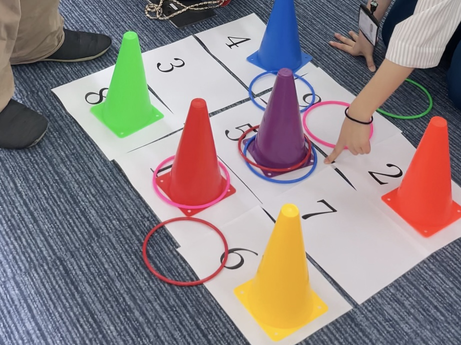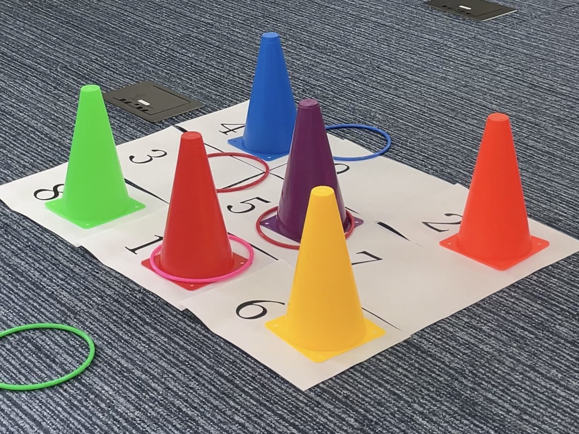 輪投げセットと数字の描かれた紙を用意します。