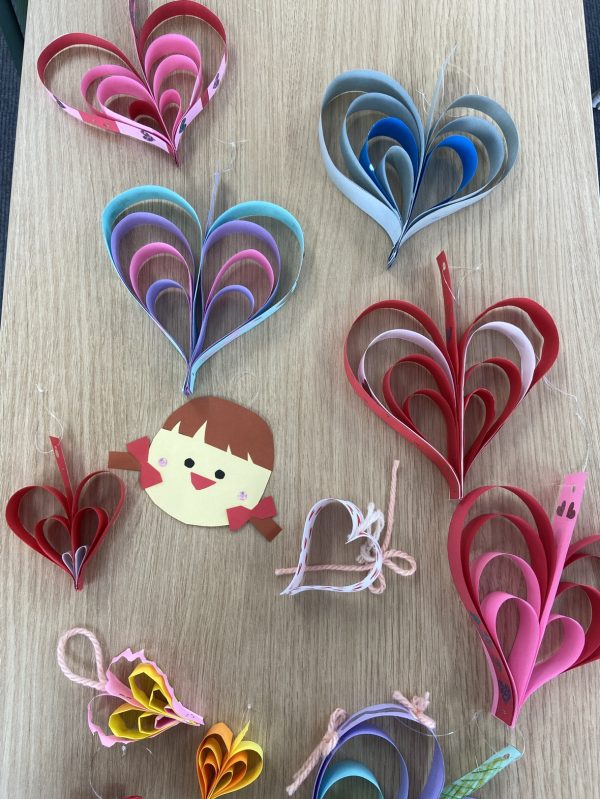ハートのモビール作り
