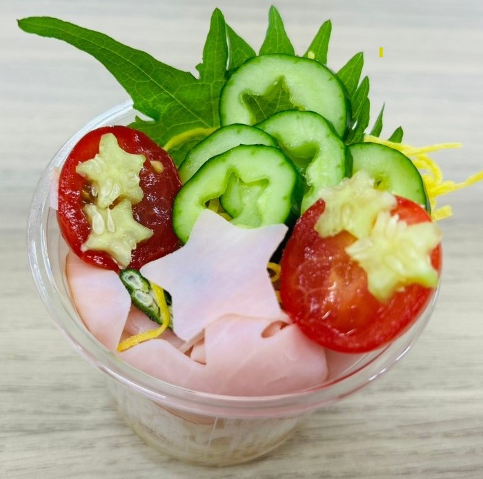 皆さんで役割分担をして、ハムやキュウリを星形やハート型に型抜き♪