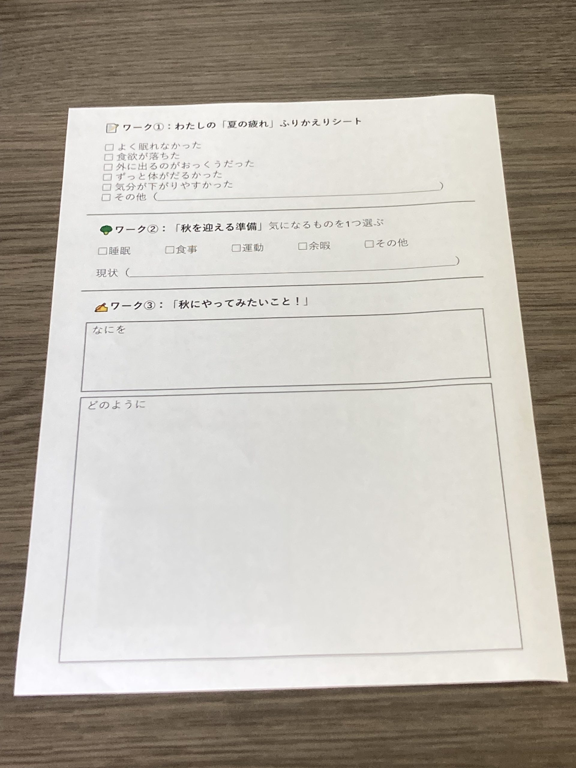 今回は、「夏の疲れを残さない 秋の生活習慣」プログラムの様子をご紹介します!