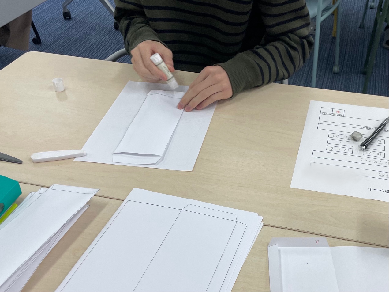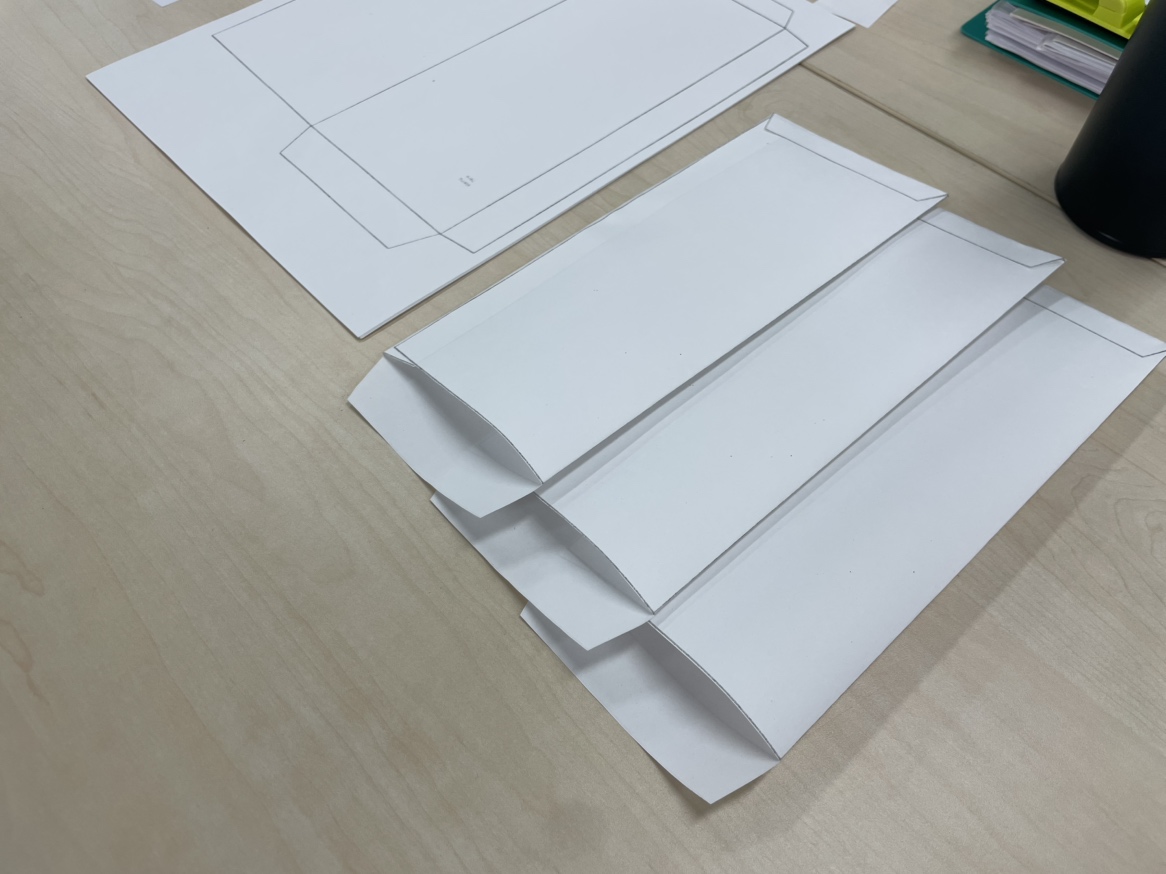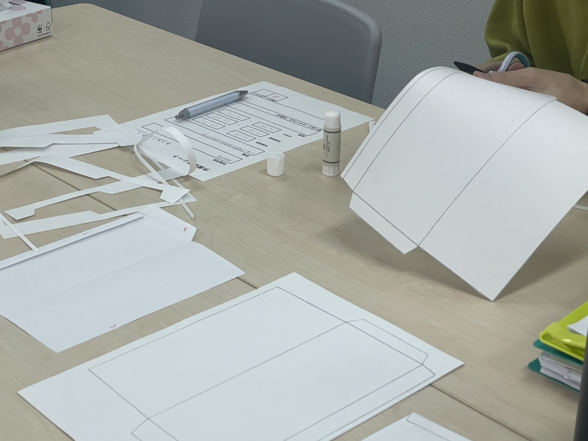 指示を受けた箇所のカット、折り込み、糊付けがメイン作業となります。
