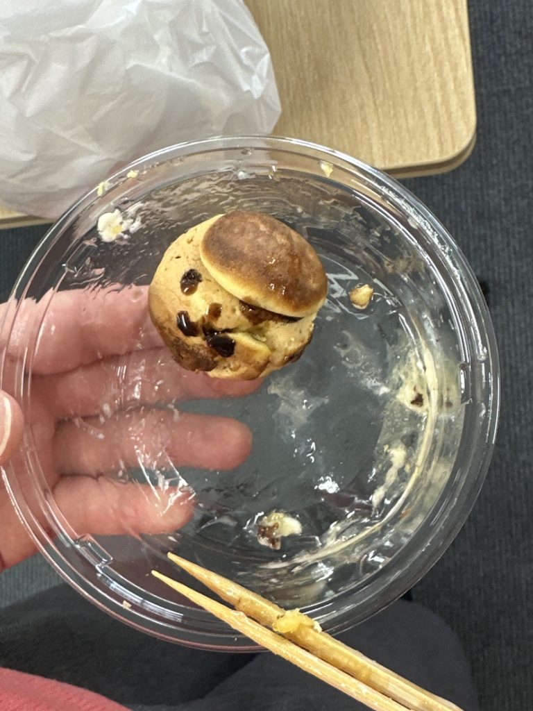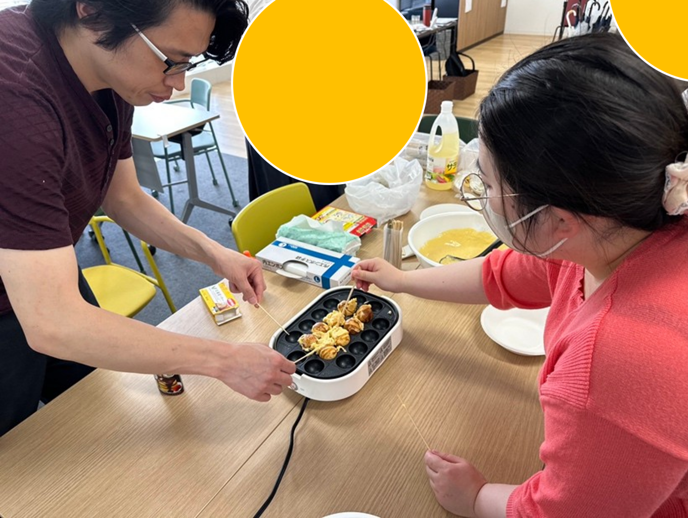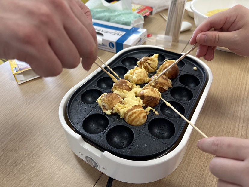 焼きの工程では、くるくるとひっくり返す作業にチャレンジ。