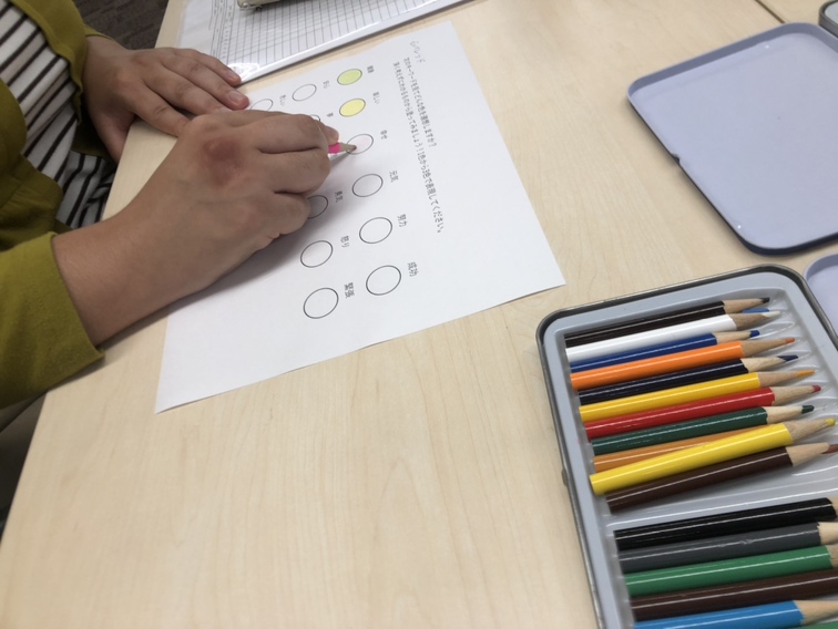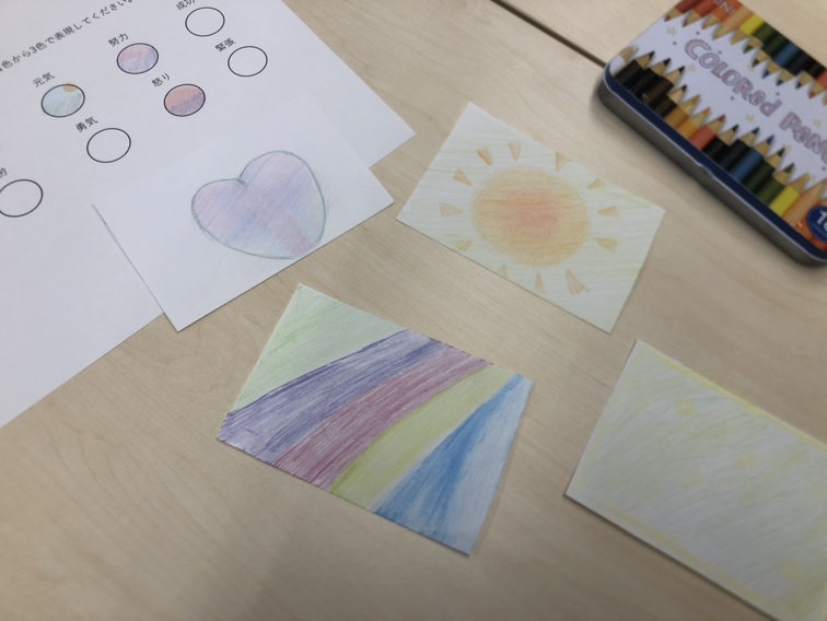 それぞれの気持ちを自分が思うイメージで色を塗りました。