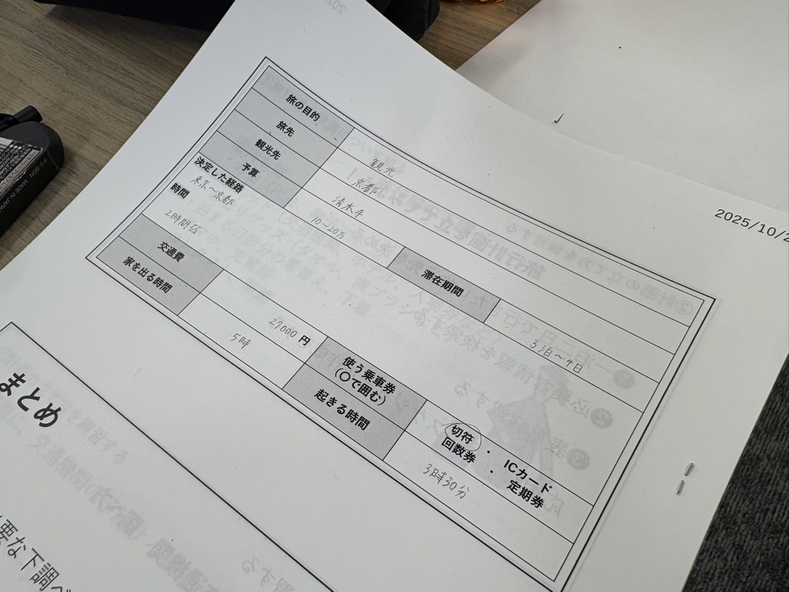 そのあとは【一泊二日の旅行計画】を作成しました。