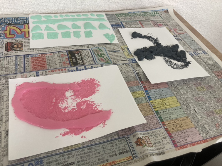 塗料を作られ、絵の作成に取り組まれていました!