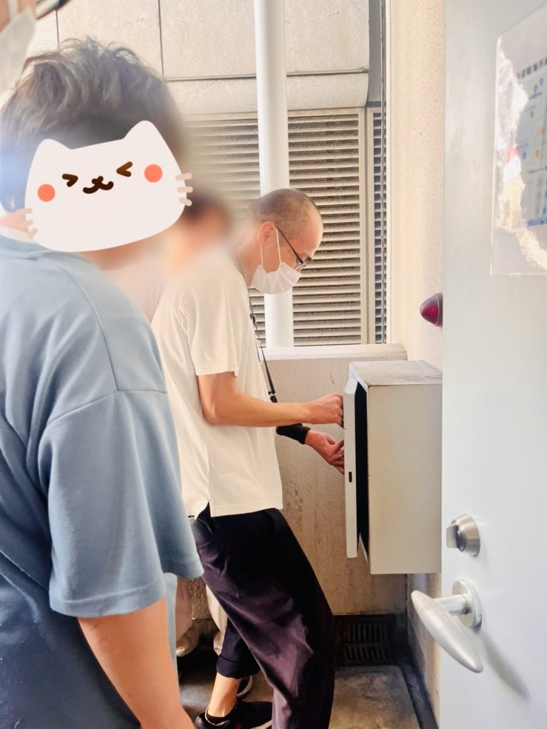 今回は事業所内の防災機器や避難経路を確認後、実際に避難を実施。