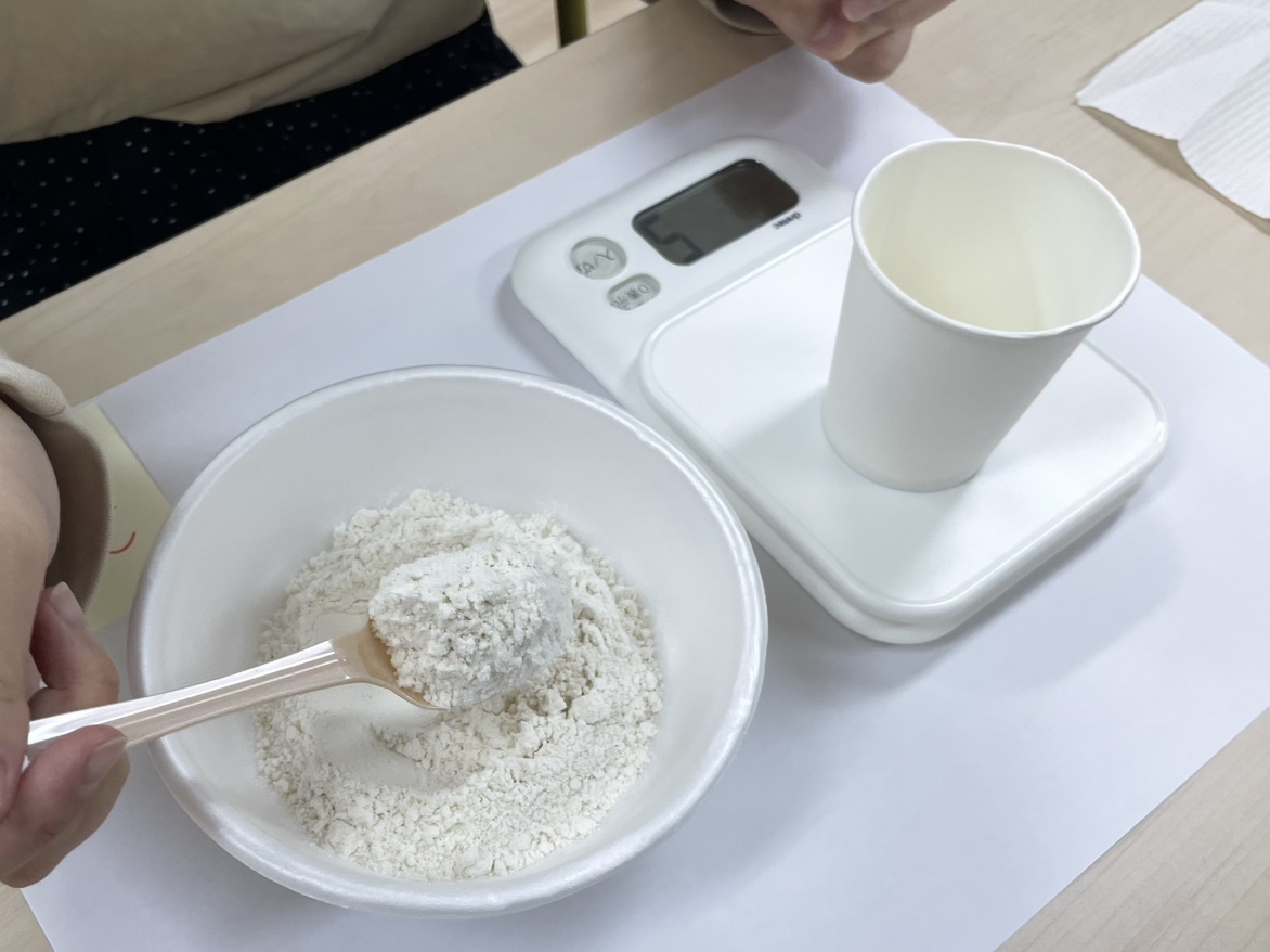 材料を計量ではかる作業体験です!