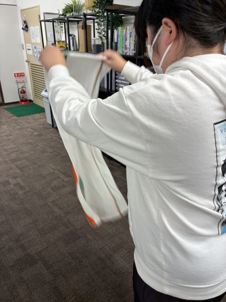 しわが残らない伸ばし方などをスタッフと一緒に確認しながら作業しました✨